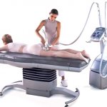 - the patient undresses to the waist; if he has glasses or removable dentures that do not adhere well, they must also be removed;